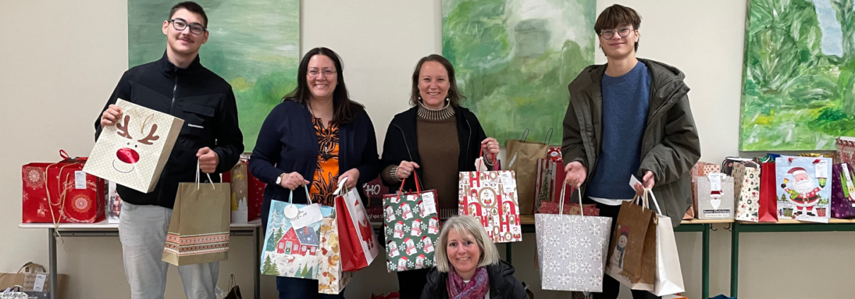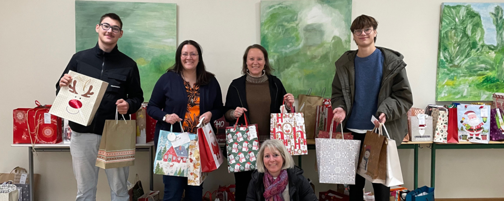 Schülerinnen und Schüler aller Jahrgänge sowie ihre Eltern zeigten wieder einmal große Hilfsbereitschaft und Großzügigkeit. Über 130 Geschenketüten wurden diesmal gesammelt und am vergangenen Mittwoch von den Lehrkräften und Schülern der SV zur zentralen Sammelstelle in die Jugendkirche Crossover gebracht. Von dort werden sie über die Caritas und die Diakonie sowie die Tafel an bedürftige Familien und ihre Kinder verteilt.