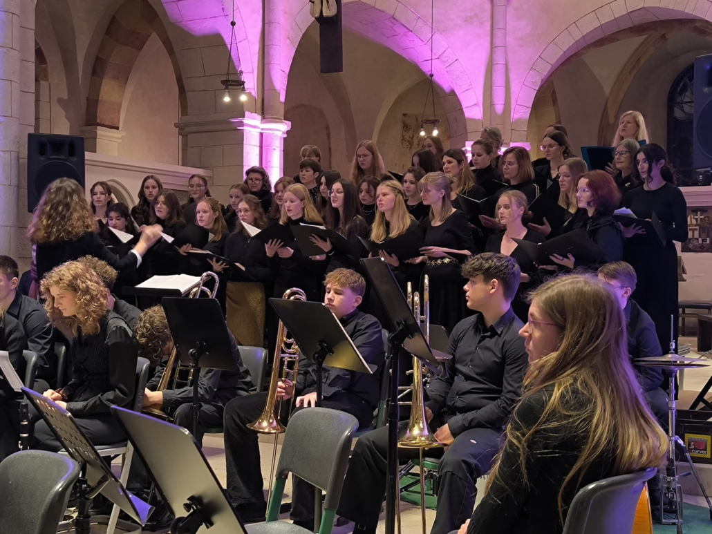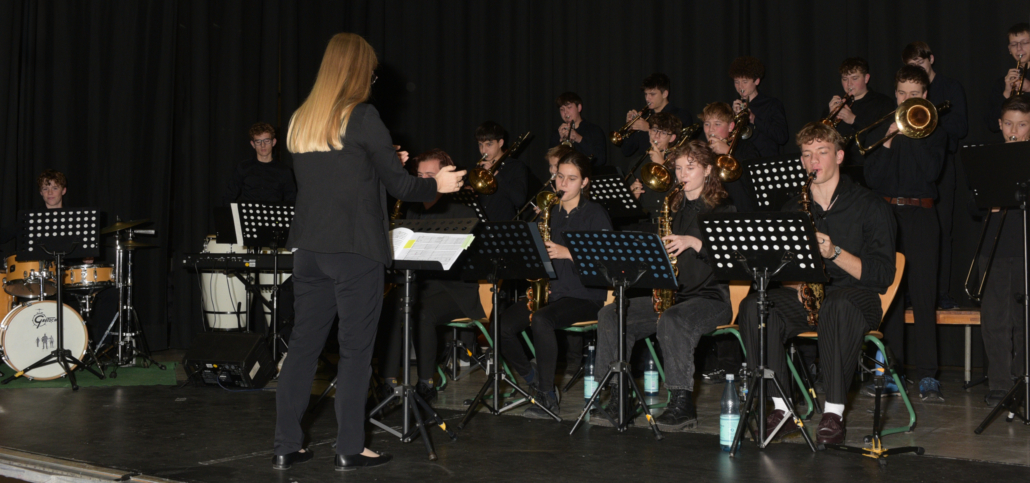Den stimmungsvollen Beginn sowie das musikalische Zwischenspiel übernahm die TileBigBand unter der Leitung von Carina Philipps, welche die Aula mit energiegeladenen Arrangements erfüllte. Die Schülerinnen und Schüler eröffneten somit nicht nur die Veranstaltung zur Beauftragung eines studierten und promovierten Musikers würdig, sondern boten dem Publikum gleichzeitig eine kleine Kostprobe für das anstehende Adventskonzert.