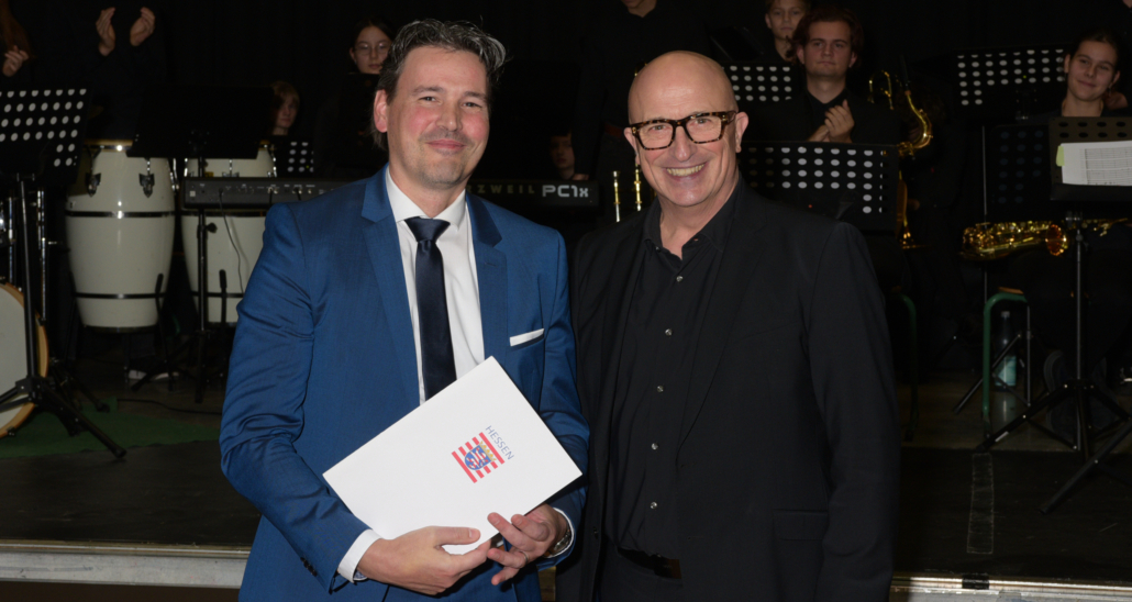 Auch die weiteren Redner wie Christian Wendel, Mitglied des Hessischen Landtags, Elke-Lore Fehr, Kreisbeigeordnete, sowie Dr. Marius Hahn als Bürgermeister der Stadt Limburg bedienten sich musikalischer Vergleiche und Metaphern. So sei man sowohl in der Schule als auch in der Verwaltung erfreut gewesen, dass sich die kommissarische Leitung als reibungsloser Übergang organisieren ließ und sich eine geeignete Person der verantwortungsvollen Aufgabe der Leitung einer solch großen Schule stelle. So sei es auch wichtig, dass die eigene Familie hinter einer solchen Funktion stehe. Bringe man aber Herz, Leidenschaft und Klugheit wie Dr. Holger Fröhlich mit, dann bedeute Schule auch das Wecken von Neugier, das Stärken von Teamgeist und das Ermöglichen von Ideen, was einem täglich in der Funktion bestärke, so Elke-Lore Fehr.
